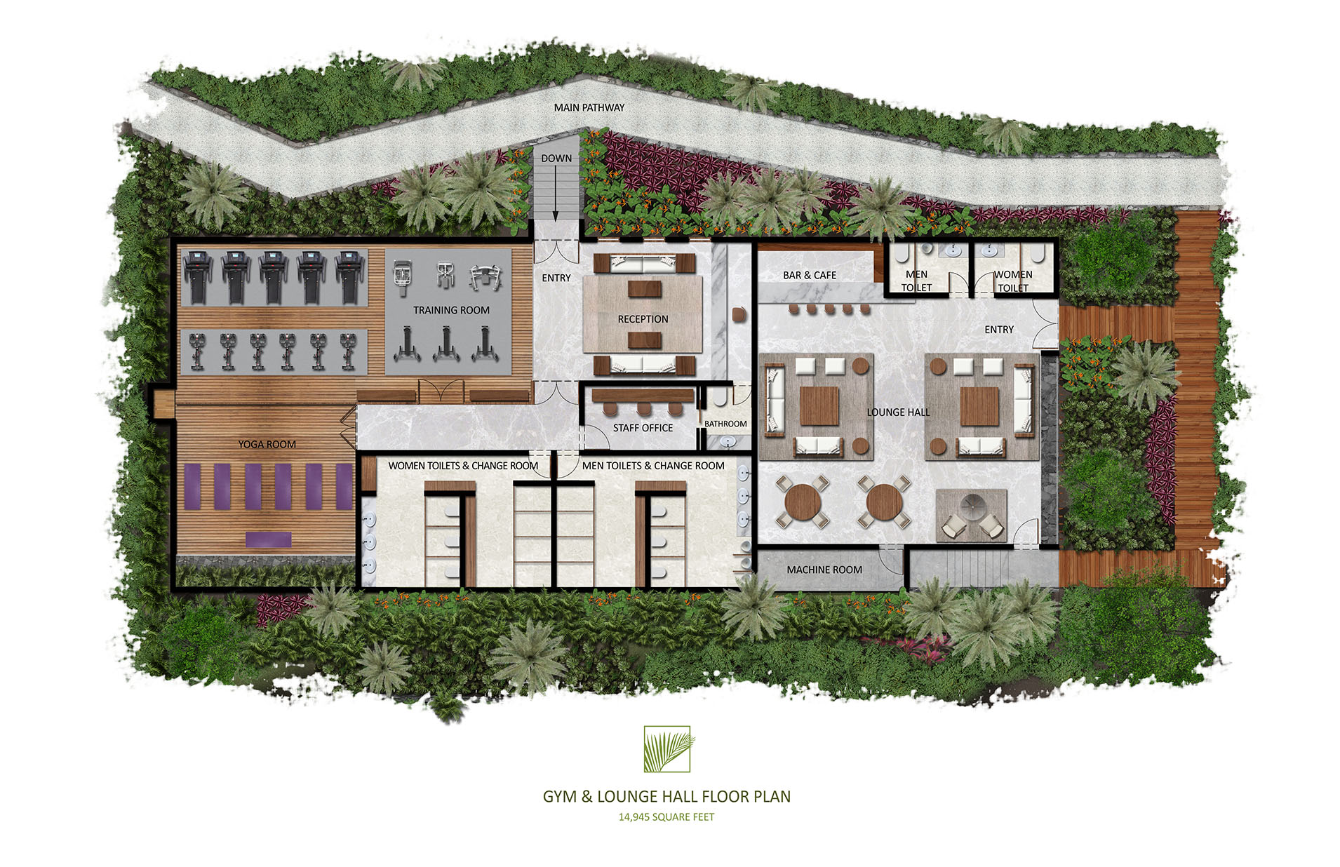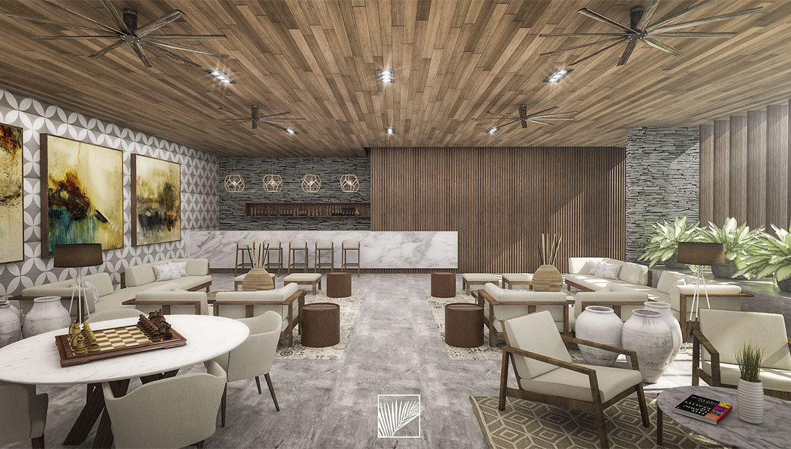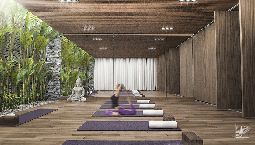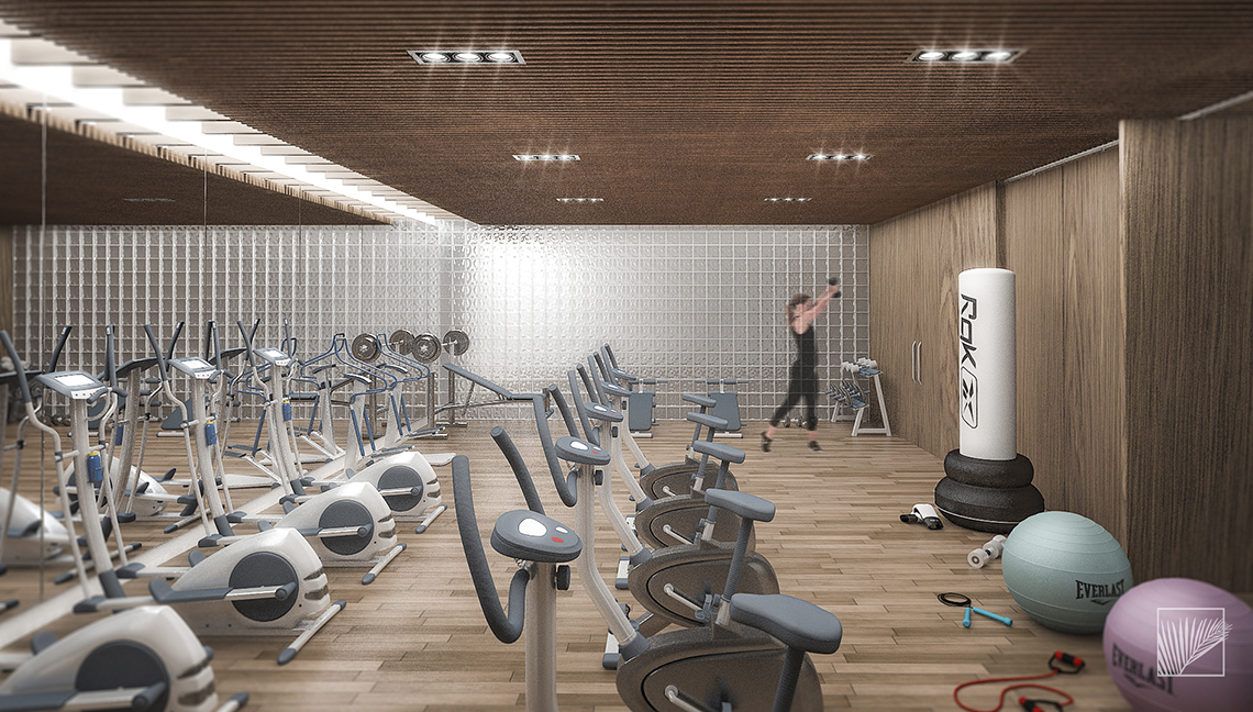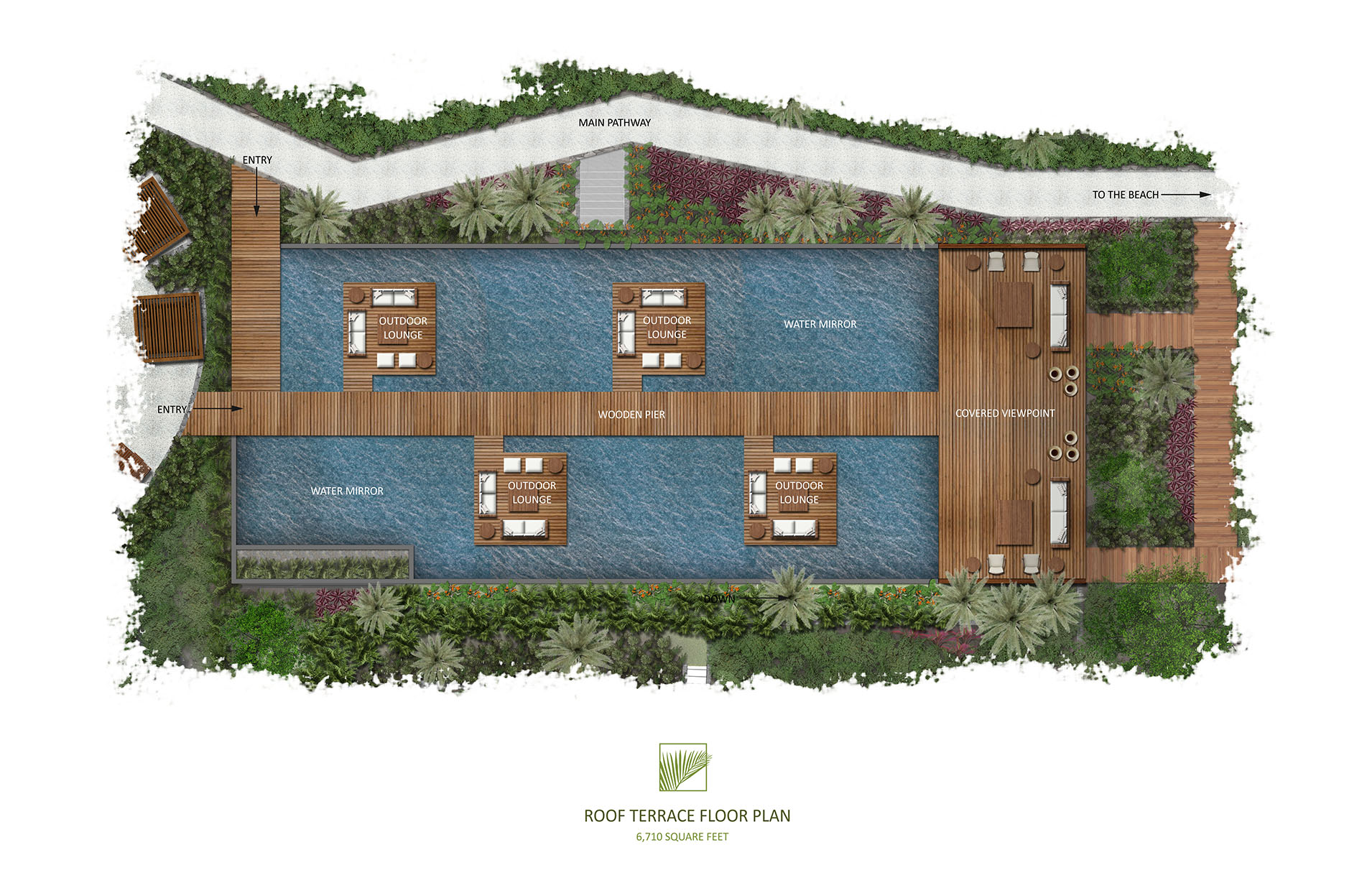 The project is located on a natural slope, which allows to use its rooftop as a wooden pier with platforms and lounges on a mirror of water. In the closest part of the sea becomes a covered viewpoint, where by its level and location, has the best view of the bay. Also, at the bottom, it has spaces for physical and mental wellness, such as yoga and gym rooms. Finally, a multi-purpose room which offers exclusive events and it's connected to outdoor amenities.